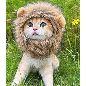 RosyLife Lion Mane Wig for Cat Costume Pet Adjustable Washable Comfortable Fancy Lion Hair Cat Clothes Dress for Halloween Christmas Easter Festival Party Activity (Brown)