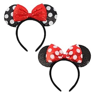 ETLUK Mouse Ears Headbands, 2 PCS Bow Headband, Classic Shiny Bow Cute Headbands for Women, Girls