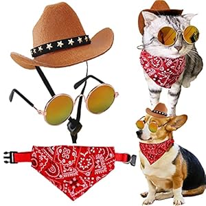 GallaRato Cowboy Costume for Pet Cowboy Bandanna Cowboy Hat for Pet Cowgirl Bandanna Sunglasses Hiphop Costume for Pet Hippie Costume